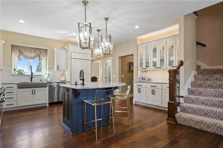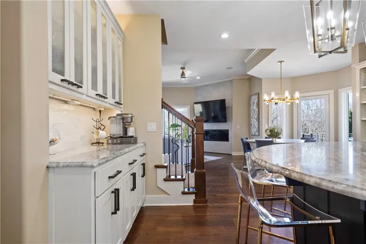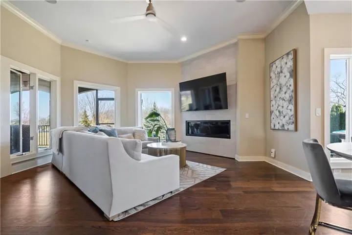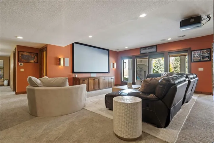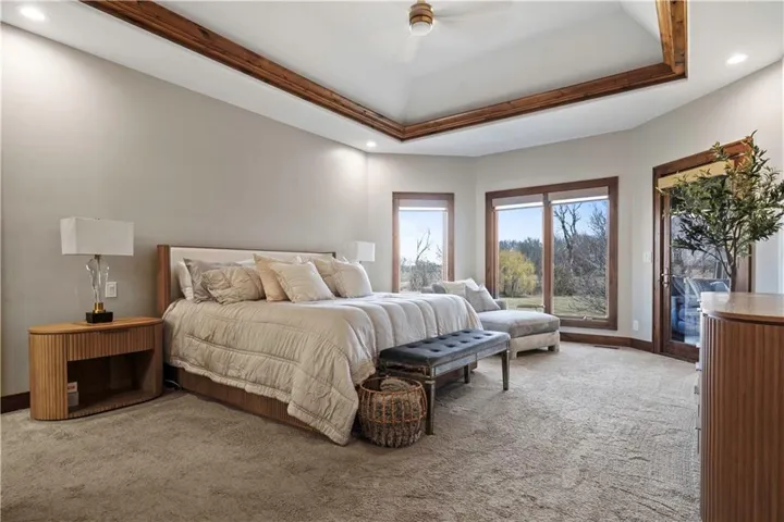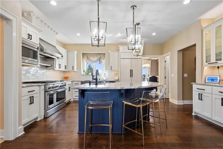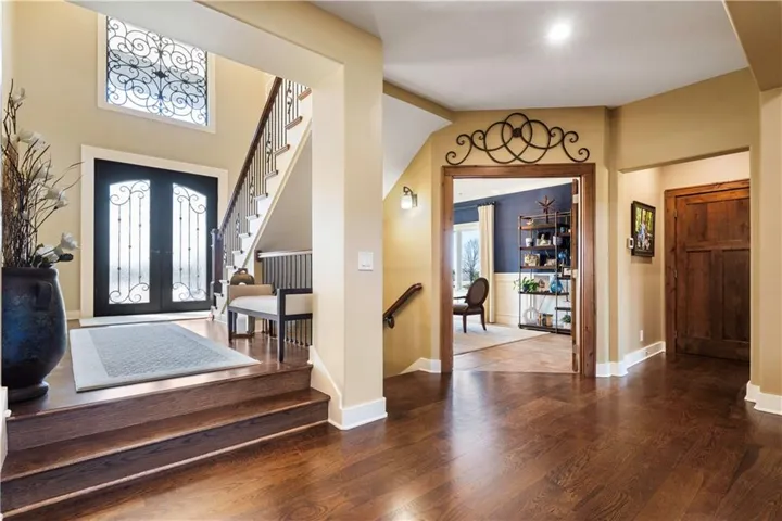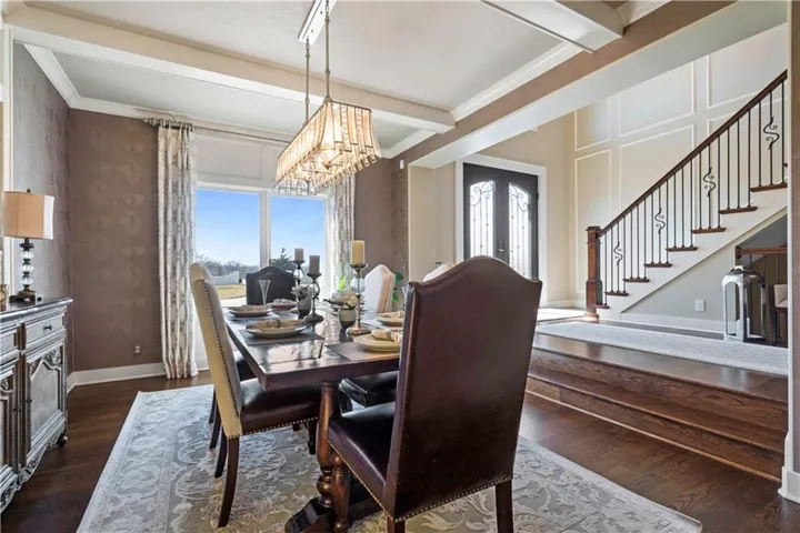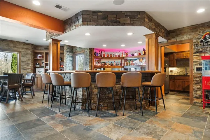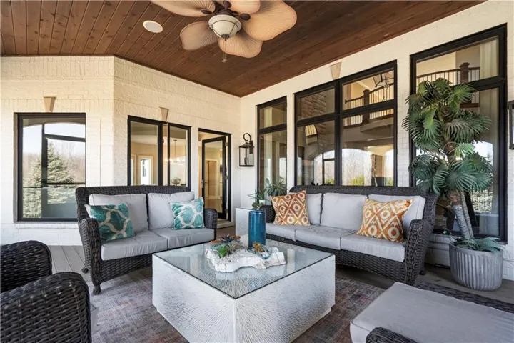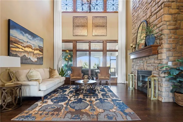 +"PublicRemarks": "Experience refined country living in this custom estate on nearly 10 acres in coveted southern Johnson County with rare access to the prestigious Blue Valley School District. This elegant 1.5-story home offers just under 7,500 sq ft of beautifully designed living space, blending timeless architecture with modern luxury and thoughtful details throughout. The main level features soaring ceilings, exquisite millwork, and abundant natural light filling the grand foyer. Enjoy a formal dining room, executive office, and vaulted great room anchored by a fireplace. The gourmet kitchen boasts granite countertops, Sub-Zero refrigeration, premium appliances, an expansive island, custom cabinetry, and a walk-in pantry. It opens to a screened lanai, perfect for seamless indoor-outdoor living and entertaining guests. The main-floor primary suite includes a spa-inspired bath, generous walk-in closet, and private lanai access for tranquil mornings or peaceful evenings. Upstairs offers three spacious bedrooms, two baths, a cozy loft living area, and a hidden playroom. The finished walk-out lower level includes two additional bedrooms, 1.5 baths, a luxurious home theater, game and media rooms, custom bar, and bonus room ideal for fitness, crafts, or hobbies. Step outside to your private resort—a heated saltwater pool with waterfall, charming pool house, covered patio, and a fully equipped outdoor kitchen featuring a hibachi grill—perfect for year-round entertaining amid mature landscaping and serene vistas. Recent upgrades include a new 50-year concrete tile roof (2025), HVAC system (2024), fresh paint inside and out, smart home automation, energy-efficient systems, and a rare six-car garage ideal for collectors or multigenerational living. Located just minutes from vibrant Overland Park and easy highway access, this estate offers an unparalleled lifestyle of elegance, privacy, and comfort in a truly spectacular setting"
