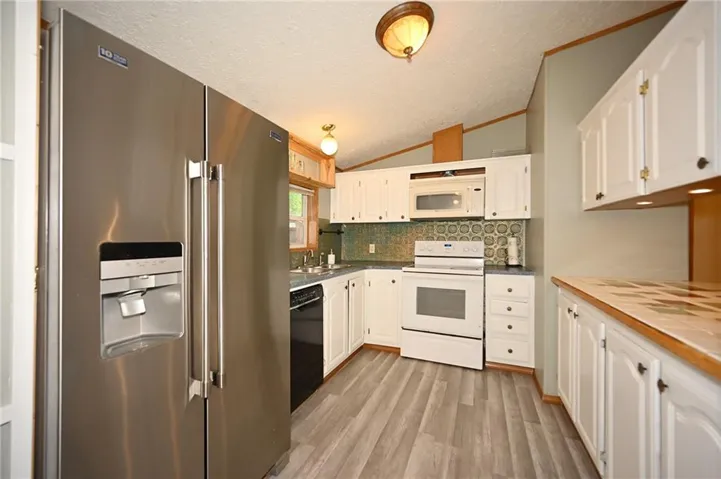 Inside, you’ll find fresh paint and new flooring, a cozy wood-burning stove. A bright kitchen with a stainless steel refrigerator, a microwave, stove and dishwasher with newly painted cabinets. Two primary suites that include private baths and a walk-in closet—perfect for multi-generational living or extra guest space.