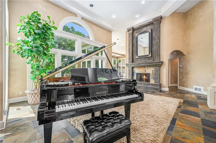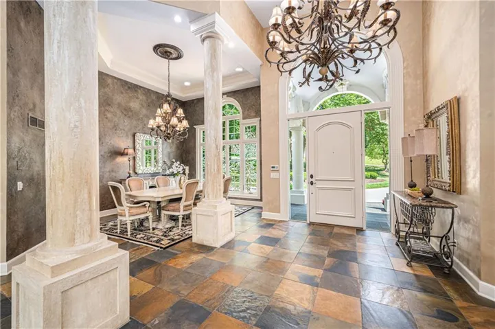 The homes 15 and 16' ceiling height making it feel to grand!! No need to go to the gym when you have your spacious work out room right at home. The 6 car garage with epoxy coated flooring and has plenty of room for your cars and big toys! Viking appliances (double oven, refrigerator and 54" gas range) will make cooking a breeze. Come view this beautiful home and make your dreams come true!!