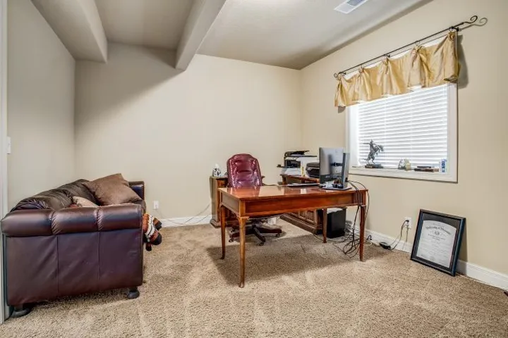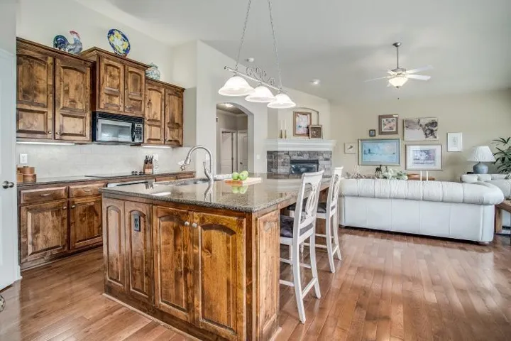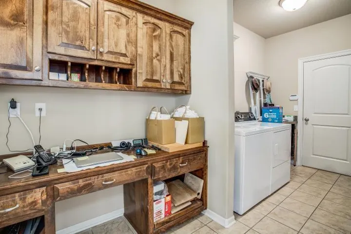 Welcome to this beautifully maintained home, where an open and inviting floorplan greets you the moment you walk in. A wide entry hallway guides you into the expansive great room and kitchen, featuring a stunning oversized island, rich cabinetry, and a spacious walk-in pantry. Elegant details like under- and over-cabinet lighting set the perfect mood for both daily living and entertaining. The main level offers two generously sized bedrooms, a stylish hall bath, and a convenient laundry room complete with a built-in pocket office—perfect for remote work or staying organized.\r\n