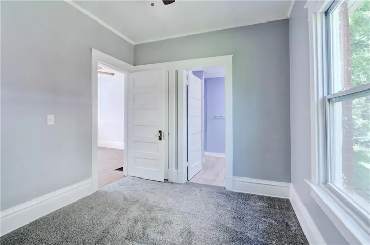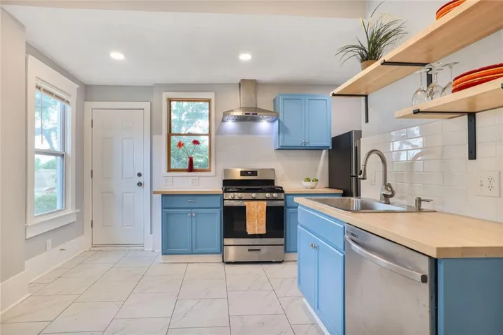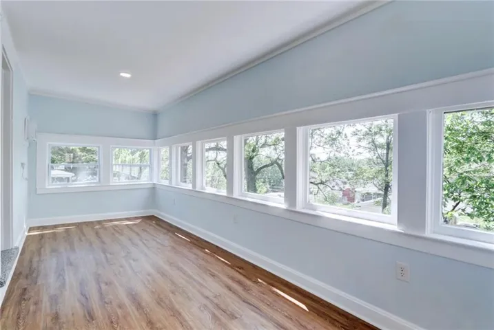 +"PublicRemarks": "This is a real gem on a welcoming street in historic Northeast only 2 blocks from amazing Kansas City museum! Step through the enclosed front porch into this tastefully remodeled 3bed/2ba. The home offers many original desirable features including original trim in entry and livingroom, leaded beveled glass, stained glass inlay, and a stunning restored cast iron fireplace with new electric insert with original tile surround. Dining room is adjacent to living room with beautiful bay window. Brand new spacious kitchen opens to generous deck overlooking large backyard, ideal for outdoor entertainment. Also access two bedrooms with full Jack-and-Jill bathroom. Upstairs features a spacious high ceiling master suite bedroom with ample his and hers closets & bright and airy bath with double vanity and full tub/shower. Laundry area & sunroom/office complete the upper level. Gorgeous light throughout. Full walk up dry basement for storage is a plus. Upgraded plumbing, electric, and HVAC. Brand new roof. Enjoy private driveway for OFF Street parking that connects to deck and provides direct access to kitchen."
