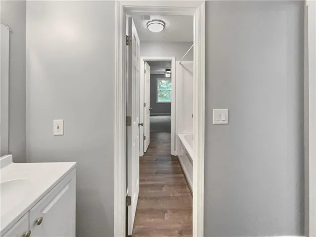 "LongDescription" => "Bathroom featuring double vanity and light wood-style floors"