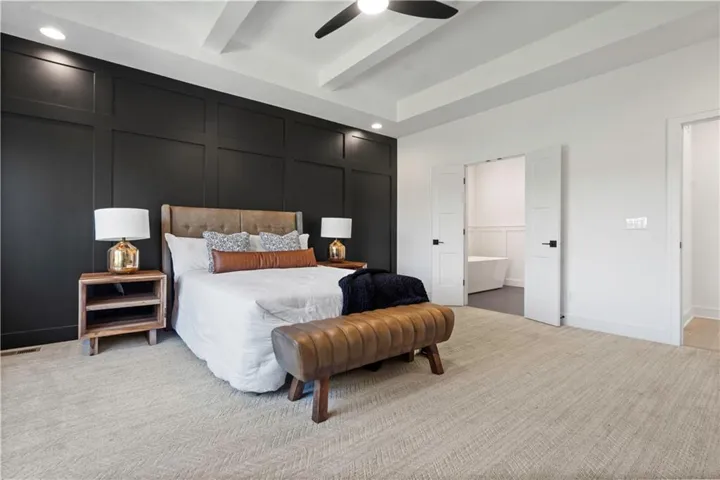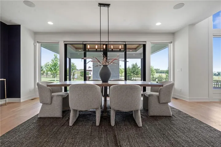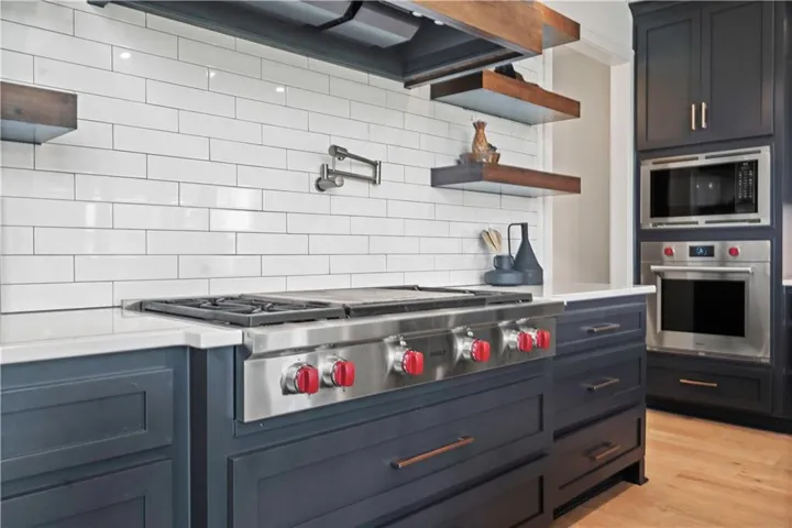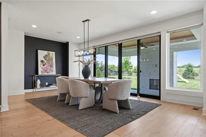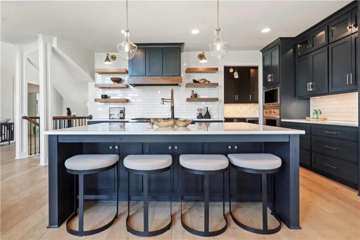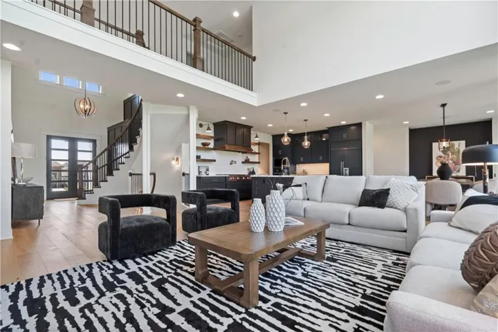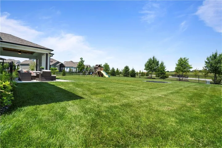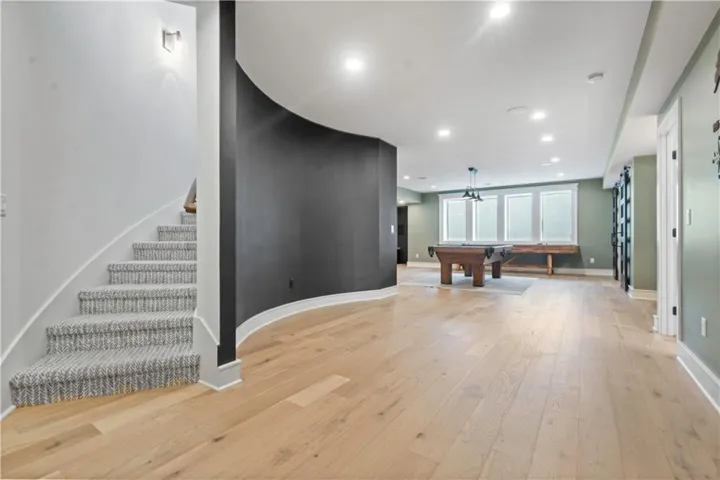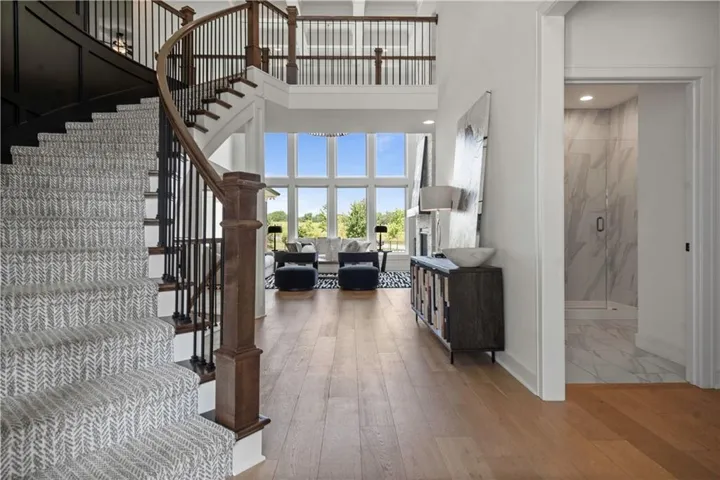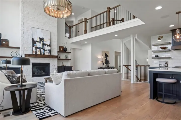 +"PublicRemarks": "This sophisticated and luxurious Maplewood III Floorplan with a finished lower level, is thoughtfully designed for an elegant lifestyle with family in mind. On the main level, dramatic architectural elements make a bold statement, including a stunning curved staircase all enhanced by upgraded hardwoods and a custom wood wall feature. The soaring two-story great room features a floor-to-ceiling stone fireplace. The designer kitchen is a chef’s dream, complete with Cambria quartz countertops, Wolf appliances, a Sub-Zero refrigerator, custom cabinetry to the ceiling, a statement oversized island, and a wet bar with instant hot water. The dining area has a designer accent wall and opens to the covered cedar deck through a French slider. Custom automated roller shades and a whole-home speaker system elevate both comfort and convenience. The spacious primary suite on the main floor provides a true retreat with upscale finishes and natural light. Upstairs, you'll find an extra-large loft ideal for a media lounge, home office, or kids’ creative zone. The finished lower level extends the living space with White Oak engineered hardwood floors, White Birch cabinetry, quartz counters, a built-in media cabinet, stylish accent walls, and barn doors leading to a dedicated playroom. A beautifully crafted bar, open space, and designer details make it a perfect place for entertaining or relaxing. Outside, the fully landscaped and fenced backyard backs to private green space and includes an upgraded Presidential roof, permanent holiday lights, an inground trampoline and playset, and a 7-zone sprinkler system. The oversized 4-car garage includes built-in cabinets for plenty of storage. Located in a quiet cul-de-sac, this home offers luxury, privacy, and comfort for discerning buyers who want it all—style, space, and sophistication. Resort-Style Amenities Include: Pool with lounging areas, clubhouse, Sports field & pickleball court, play zone & community garden & walking trails."