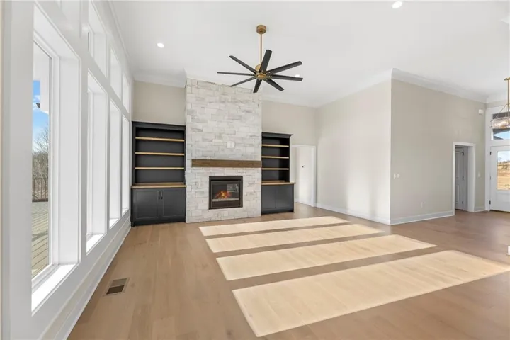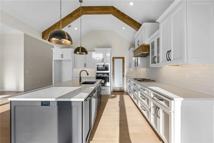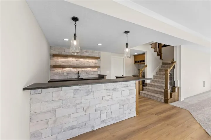 +"PublicRemarks": "Lot 122. The "Expanded Prairie Rose" by McQueen Homes! Spectacular home with LAKE and Golf views in a GOLF COURSE COMMUNITY is READY NOW!! Nesting bald eagles across the lake! Reverse plan with open Great Room full of windows to enjoy the view. Fireplace with stone to the ceiling and a bookcase/cabinet on either side. Open to the Kitchen and Dining Area with large Island & amazing walk in pantry. The Primary Bedroom boasts a double box up ceiling and windows to view the lake! Additional higher transom windows on a feature wall for added light. Unique luxury Primary Bathroom has a walk in shower and a stand alone tub with a view of the lake! Second Bedroom and Bath also on the main level. The Lower Level walkout Rec Room includes a wet bar, entertainment area and gorgeous upgraded sliding doors to your outdoor living. A full bath and Bedrooms 3 & 4 complete the lower level. Good storage! Large covered deck and additional uncovered deck for viewing the Lake and enjoying the outdoors as well as a large patio at the lower level walk out. All homes in the Boulder Estates come with irrigation system and fully sodded yard. Riprap seawall at property edge also included. Convenient highway access. Ten minutes to the Legends Entertainment and Shopping area and 30 minutes to the airport and most other parts of the metro area as well as Lawrence. Community pool, play area, basketball, tennis and pickleball courts. Wonderful restaurant open to the public. Acclaimed Basehor-Linwood Schools!"