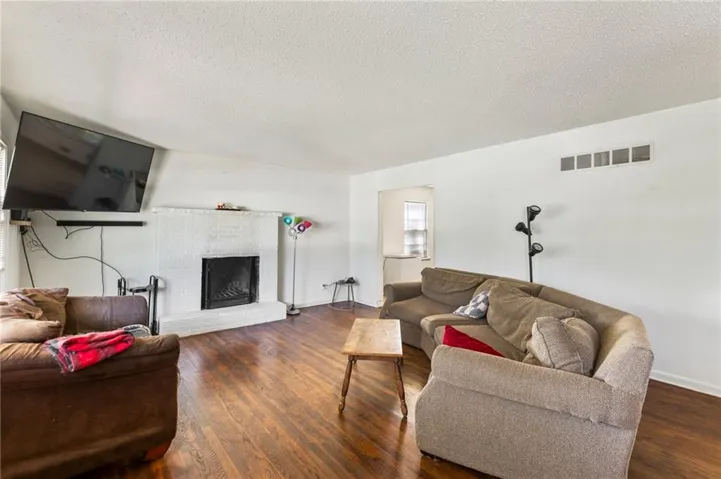 "LongDescription" => "Living room featuring a textured ceiling, a wall mounted AC, and dark wood-type flooring"