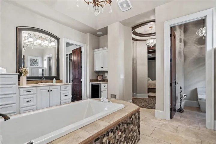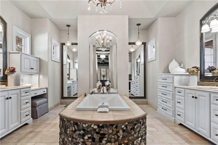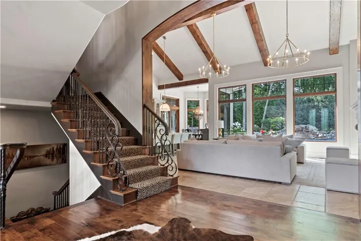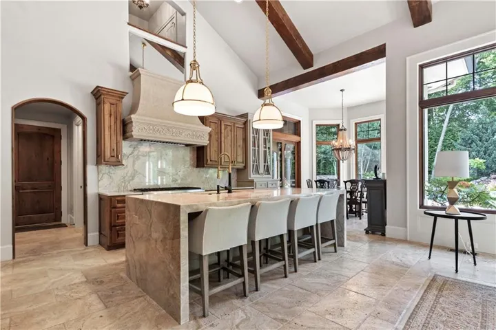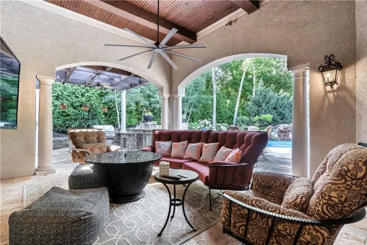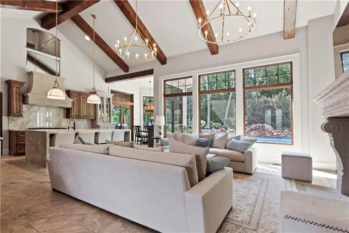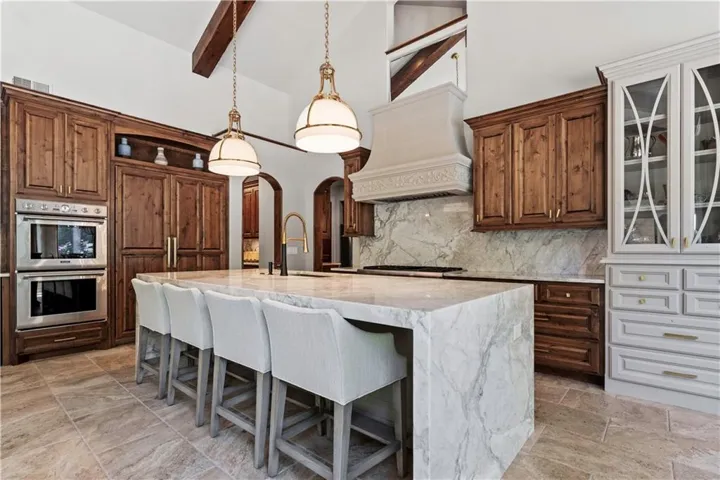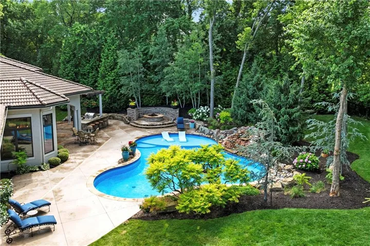 +"PublicRemarks": "ELEGANT CUSTOM HOME ON A CUL-DE-SAC IN DEERBROOK! Step into luxury with this stunning custom build by Cecil & Ray with design by Bickford & Company. Tucked away on a private cul-de-sac, this home showcases a resort-style backyard oasis featuring a saltwater pool with waterfall, covered lanai, gas fire pit, outdoor kitchen with ice machine, and lush privacy landscaping—an entertainer’s dream! Inside, thoughtful design meets timeless craftsmanship: hickory wood floors, soaring ceilings with exposed beams, and designer finishes throughout. The Great Room impresses with a dramatic fireplace and a full wall of windows overlooking your backyard paradise. Chef’s kitchen is a showstopper—featuring a massive quartzite waterfall island, prep area, double ovens, gas cooktop, under-counter microwave, high-end stainless steel appliances, and expansive storage. An adjacent breakfast area makes gatherings seamless. The main-level primary suite is a true retreat with tray ceilings, exposed beams, new wood floors, and a spa-like en-suite complete with soaking tub, rainfall shower, double vanity, and an oversized walk-in closet with built-in island dresser and laundry hook-ups. Upstairs, find three spacious bedrooms, a convenient second laundry room with wet bar, and a media/family room for extra living space. A large unfinished basement offers endless possibilities for your future finish. Car enthusiasts will love the heated and expanded 4-car garage. From quiet mornings poolside to evenings entertaining under the stars, this home offers it all—style, function, and unmatched outdoor living. WELCOME HOME TO DEERBROOK!"