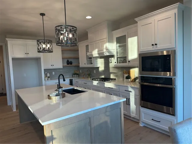 Kitchen: Gas range, tall cabinets with glass uppers, upgraded hardware, wine fridg\r\n