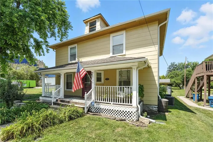 +"PublicRemarks": "Whimsy meets character in this SPACIOUS home just a stone's throw from the square! From the covered porch with SWING to the LARGE deck right off the Master Suite, you'll have plenty of OPTIONS for relaxing. You'll have the time with the low maintenance yard featuring rainwater collection barrels. There's LOTS of main level room to spread out and ENJOY! The kitchen and all the updated bathrooms have TILE floors. Up the stairs you will see the hardwood flooring throughout the hall and bedrooms. There's a separate HVAC unit up there for amazing climate control. ALL appliances stay including refrigerator, washer and dryer. JUST COMPLETED: dirt added, and a foundation drain tile system to help keep that basement DRY so you can have plenty of STORAGE space! If that's not enough, don't forget the shed out back for storing your outdoor items and MORE! There's alley access to the back for extra parking. This home is READY for new owners to LOVE! Come SEE!"