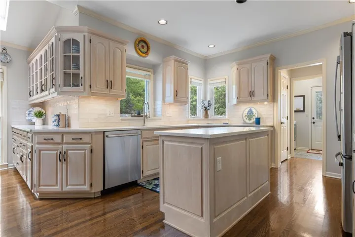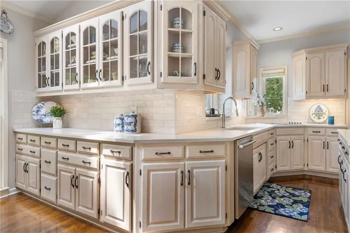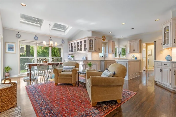 +"PublicRemarks": "Welcome to this beautifully maintained 2-story Cape Cod nestled on a picturesque corner lot in the highly sought-after Waterford community of Leawood. From the moment you arrive, the inviting front porch and abundant curb appeal set the tone for the warm, timeless style found throughout. Inside, rich hardwood floors and a spacious, thoughtfully designed layout create the perfect blend of classic elegance and everyday comfort. The expansive great room is filled with natural light, boasting large windows, custom built-ins, and a see-through fireplace—perfect for gathering with family and friends. The main level also features a formal dining room and a versatile living room ideal for a home office, music room, or sitting area. The kitchen offers updated countertops and stylish backsplash, a center island, walk-in pantry, plus a bonus work space and additional cabinets, seamlessly flowing into the cozy hearth room with its own fireplace and casual dining area. Upstairs, the generous primary suite serves as a true retreat, complete with a spacious ensuite bath, his-and-hers closets, and an adjoining bonus room ideal for a private office, sitting area, or nursery. Three additional well-sized bedrooms complete the upper level. The exceptionally designed lower level offers an abundance of additional living space and endless flexibility with a possible fifth non-conforming bedroom, full bath, dedicated workout room or office, and ample storage. Outside, enjoy the peaceful setting from a brick paver patio and space to play. A 3-car garage adds even more convenience to this exceptional home. Such a classic Waterford gem!"