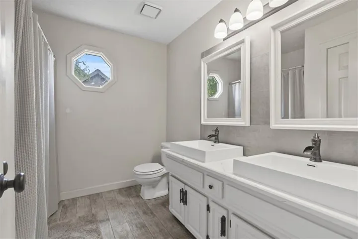 Colonial Elegance in Beautiful Lenexa. Discover timeless charm and modern comfort in this beautifully updated Colonial-style home, ideally located in the heart of Lenexa. The kitchen is a standout, featuring newer appliances, stylish tile flooring, and a coordinating backsplash that adds a cohesive, designer touch. A quartz-topped island anchors the space, perfect for casual meals or entertaining guests. The main level showcases rich wood floors that have replaced the original carpet, offering both sophistication and easy upkeep. Upstairs, you'll find four generously sized bedrooms, providing ample space and privacy for the entire household—all on one level. The spacious primary suite includes a versatile ensuite office, ideal for remote work, creative projects, or a peaceful reading retreat. Step outside to enjoy the serenity of the green space just beyond the backyard—your own private, natural haven. This gem combines classic style with thoughtful updates.\r\n