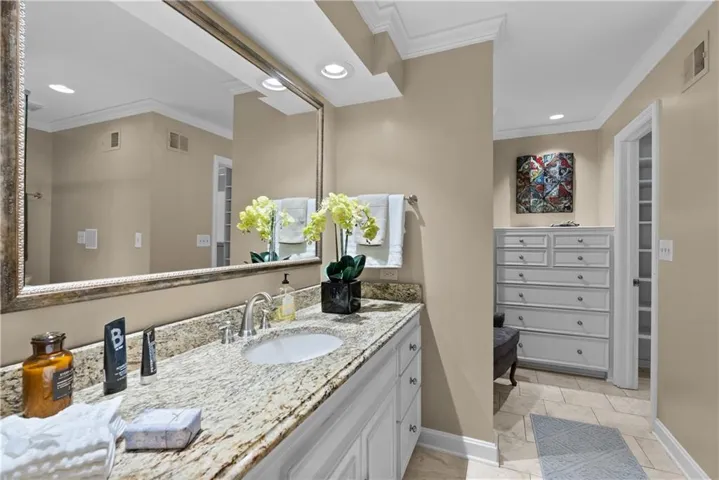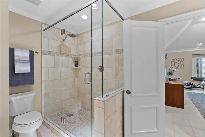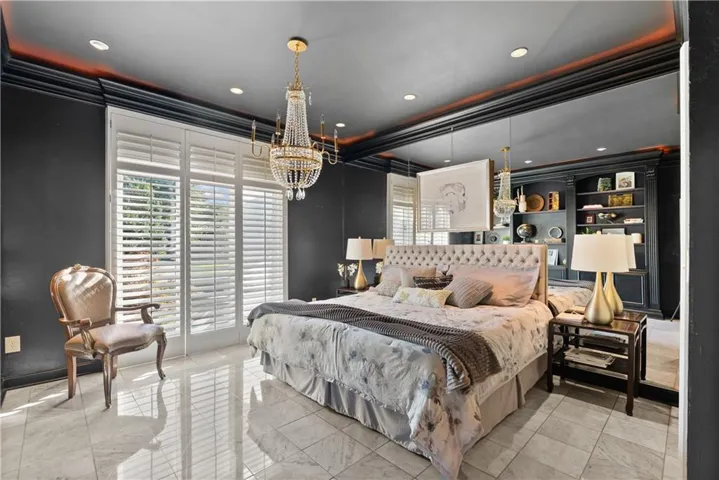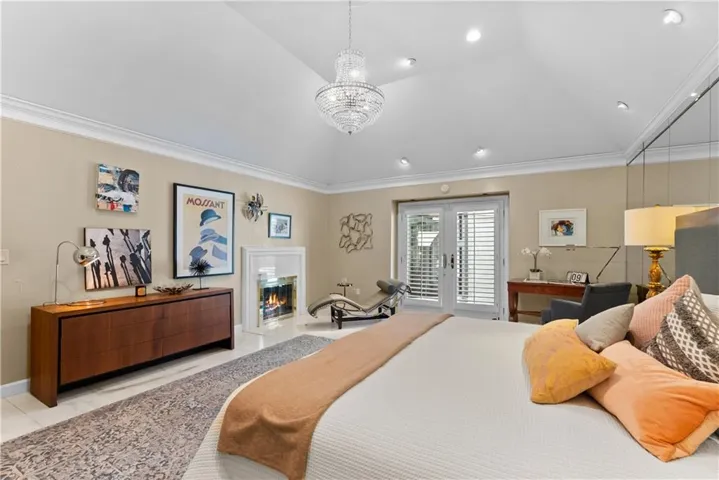 The glamorous primary suite boasts vaulted ceilings, marble floors, a cozy fireplace, and dual bathrooms and walk-in closets—offering luxury and space for both comfort and function.\r\n