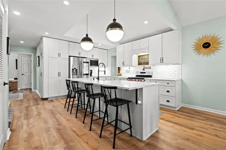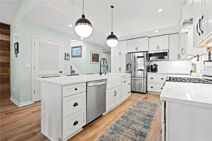 This thoughtfully designed home that was completely renovated in 2019 offers true main-level living with a spacious primary suite featuring a luxurious en suite bathroom and walk-in closet, plus a second bedroom conveniently located off the kitchen. The kitchen is a showstopper with custom built-in cabinetry and sleek quartz countertops.\r\n