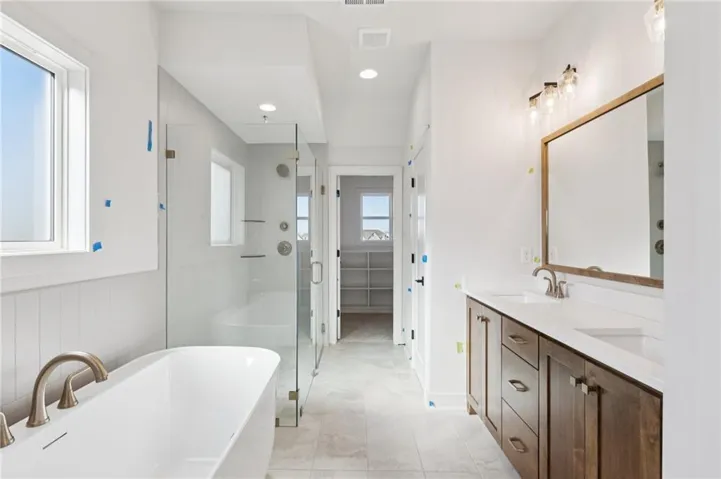 Upstairs, you’ll find four spacious bedrooms, including a luxurious primary suite with a large soaking tub and separate shower. The laundry room is conveniently located near all bedrooms for easy access.\r\n