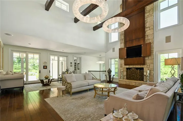 +"PublicRemarks": "Experience a lifestyle of unrivaled elegance in this one-of-a-kind custom estate, on 2.5 pristine and completely private acres with peaceful pond views. This is not just a home; it’s a rare sanctuary for those who demand high end finishes, privacy, and excellence in build quality. Designed with innovation and intention, this 1.5-story home offers a modern, functional floor plan, and seamless indoor-outdoor living. A large scale renovation was done adding a stunning, state-of-the-art chef’s kitchen, fully updated bathrooms, and fresh all interior and exterior paint, landscaping and more. The main level features two private offices or flexible living spaces, two covered porches and an outdoor kitchen. Expansive windows showcase panoramic views of the heated saltwater pool and natural beauty of the private acreage. The walk out lower level features media room with theater projector, a bedroom, workout room/ bedroom, wine cellar, and additional light filled office or craft room. Outside there is direct access to the 2.75 mile paved community trail, carefully manicured landscape with new exterior lighting added all around the property. Efficient, green, and low maintenance features were intuitively built, including a metal roof, cement board siding, geothermal heat, Ipe wood decking, new whole house water softener and energy efficient windows. This gated community offers many acres of conservation preserved nature, waterfalls, and party barn, lake activities on a a 20 acre lake and 6 stocked ponds. Location, gorgeous privacy, and upscale amenities complement this stunning estate home inside and out."