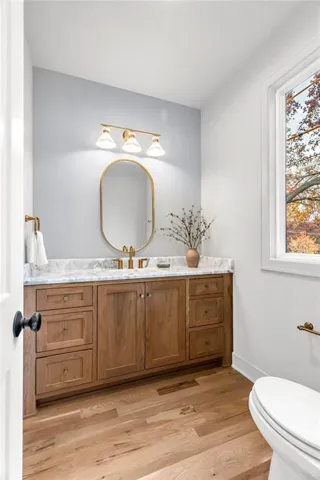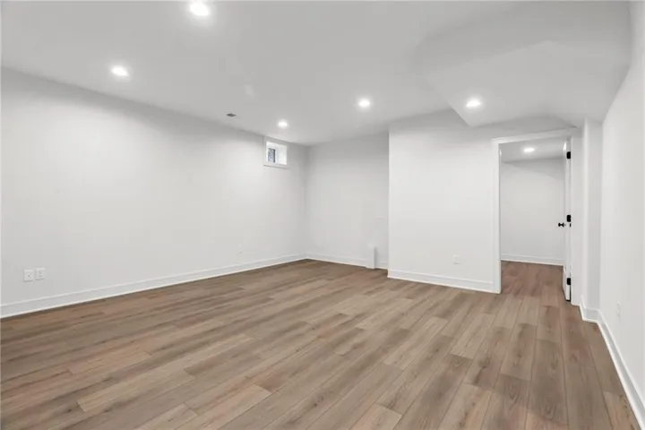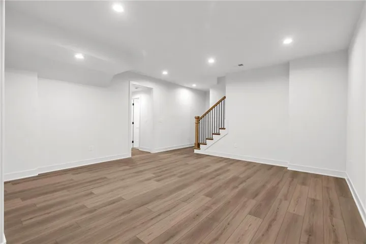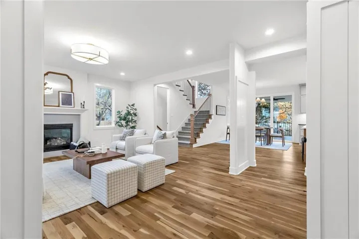High-end finishes throughout. Soft-close cabinet drawers, 8' doors on the main level, solid core doors throughout, inset hardwood floor vents, hardwood stair treads to the second floor, LVP flooring throughout the lower level, custom fireplace surround, sprinkler system, new fence, battery backup sump pump and more.