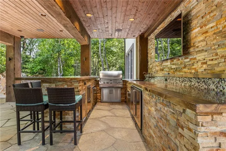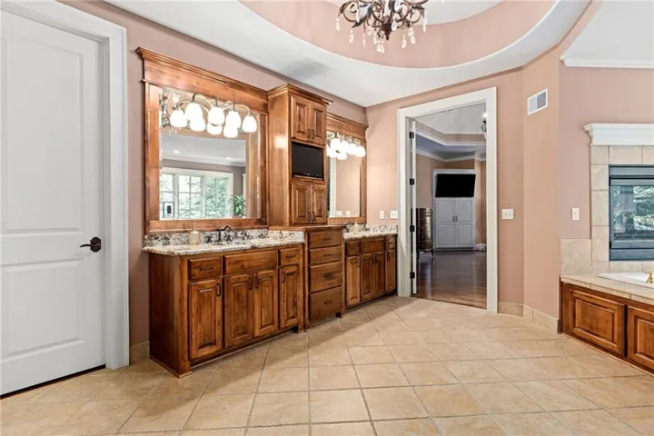 Step outside to your personal resort: a sparkling in-ground pool with cascading waterfalls, a built-in grill in the outdoor kitchen area, serene landscaping, and expansive deck—an entertainer’s dream. Two fireplaces add warmth and charm indoors, while high-end finishes throughout make this home truly turnkey.\r\n