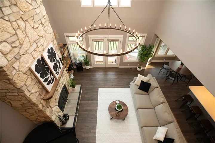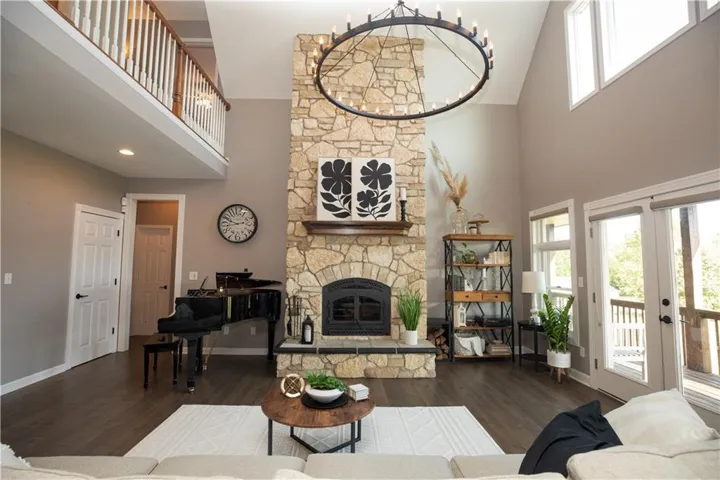 Vaulted living room ceiling boasts an impressive iron Restoration Hardware chandelier, offering a grand entrance to this 4 bedroom / 4 full bath home. The floor to ceiling stone fireplace wall is home to a Heat N Glow Northstar wood burning fireplace with blower that could be used as a primary heat source if desired. Enjoy preparing meals on an induction stove top, boiling water in just a couple of minutes. The durable quartz countertop is both elegant and practical. Juggling multiple recipes ins a breeze with the easy convenience of a double oven, pull-out spice racks, a pot filler and undercounter microwave all while enjoying the open view to the living room and back yard. The master bath has a double vanity, jetted tub and separate shower. The home comes with custom Levelor window coverings. \r\n