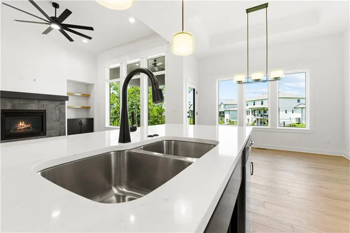 +"PublicRemarks": "Welcome to this exceptional Reverse 1.5 Story home in the final phase of Benson Place Landing, perfectly situated on a cul-de-sac walkout lot that backs to greenspace and a scenic walking trail. Just a short walk from one of the neighborhood’s two community pools, this home offers an ideal combination of location, design, and lifestyle. The open-concept layout features 4 bedrooms and 3.5 bathrooms, with upscale finishes and thoughtful craftsmanship throughout. The great room showcases hardwood flooring and a gas fireplace, seamlessly connecting to the kitchen and dining area for effortless entertaining and everyday living. The finished walkout lower level includes a spacious family room with a wet bar and beverage fridge, providing additional living and gathering space. In addition to the impressive standard features, this home also includes an upgraded kitchen island, composite decking with all-metal handrails, all bathrooms have tile showers, and a convenient tub sink in the garage. The 3-car garage offers generous storage, and the 7-zone lawn irrigation system ensures a well-maintained yard. Located within a vibrant community and top-rated school district, with easy access to highways, trails, parks, and shopping, this move-in ready home is a rare opportunity in one of the Northland’s most desirable neighborhoods."