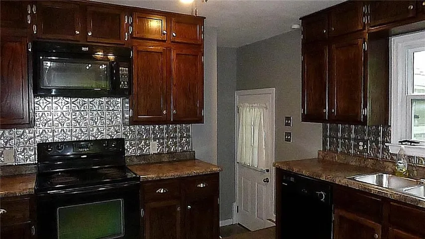 "LongDescription" => "Kitchen with decorative backsplash, a textured ceiling, stainless steel appliances, and sink"