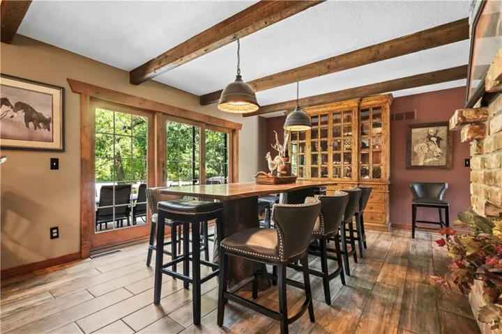 DISCOVER THE HIDDEN GEM! GORGEOUS COUNTRY RETREAT ON 10 ACRES IN JOHNSON COUNTY!! Nestled on 10 serene acres with a picturesque pond, this property offers the perfect blend of rustic charm and modern comfort. Step onto the welcoming covered front porch—ideal for peaceful mornings and quiet evenings. Inside, the spacious living room flows seamlessly into a stunning kitchen featuring stained cabinetry, granite countertops, a farmhouse sink and stainless steel appliances. Adjoining dining/hearth room opens to a deck, creating the ultimate indoor-outdoor entertaining experience. Main level boasts 3 bedrooms and 2 full baths, while the walkout basement expands your living space with a cozy family room, second fireplace, recreation area with wrap-around wet bar, non-conforming 4th bedroom, 3rd full bath, and a laundry room complete with a custom pet wash station! Additional highlights include an attached 2-car garage with epoxy floors. Outside, the sweeping acreage is perfectly suited for hobby farming, equestrian use, additional building sites, or simply enjoying the privacy and tranquility of your own country retreat. All of this in Johnson County—offering the best of both worlds: peaceful country living with convenient access to shopping, dining, and major highways.\r\n