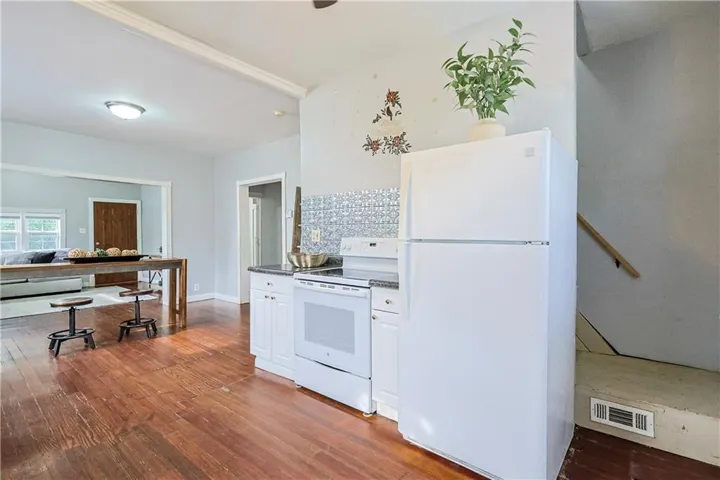 +"PublicRemarks": "Charming bungalow nestled on a tree-lined street. This inviting home features beautifully refinished hardwood floors and a newer roof. Enjoy multiple parking spaces and a fully fenced backyard with a back deck—perfect for relaxing or entertaining. The kitchen comes complete with the stove, refrigerator, and dishwasher, making your move-in even easier. The kitchen seamlessly opens into the dining area, which leads directly into the spacious living room for an open feel. With three bedrooms, there’s plenty of space for everyone to feel right at home. Ideally located with quick highway access and just minutes from shopping, dining, and entertainment. Don’t miss your chance to see this one—schedule your showing today!"