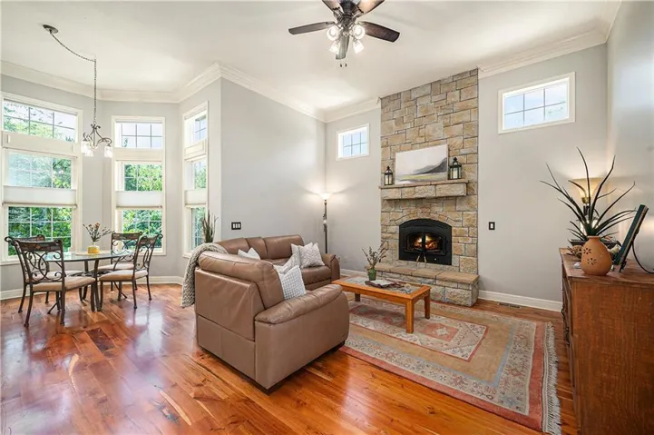 +"PublicRemarks": "Stunning estate located on 6.37 acres. Be prepared to be amazed as you pull up to the private security gate and white fence. This magnificent home is tucked away towards the back providing full privacy. Traveling down the long drive you will experience nature at its finest with tall trees, a beautifully landscaped flat yard, and wildlife outside your front door.\u{A0} This 1.5 story home is just shy of 4000 square feet with oversized two car garage. Entering through the front door you will be greeted with soaring ceilings and an abundance of natural light. \u{A0}Amazing kitchen features oversized island, loads of cabinet space, gorgeous counter tops, brass farm sink, walk-in pantry and eat-in area. Kitchen opens to hearth room with stone fireplace creating the perfect space for family gatherings or one that likes to entertain. Step out back to spacious deck or step down further to a massive patio looking out to peaceful views of green Located off the patio is a thoughtfully designed heart shape fire pit, perfect for star gazing and bonfires. Primary suite is located on the main level with spa like bath featuring soaker tub, shower, double vanities, fireplace, and walk-in closet. Two additional bedrooms and full bath are located on the main floor. Located on the second level is a generous sized bonus room, 4th bedroom with walk-in closet, and newly updated bath. The most unique feature out of many this home has to offer is the partially finished lower level. This is an additional 1000+ square feet with endless potential and for one to do what they desire. One absolutely has to experience this property to believe it. It is unique, special and one of a kind."