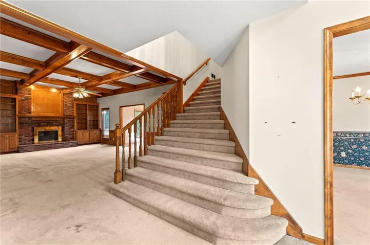 +"PublicRemarks": "Hurry and make this beautiful home your own! This 1 1/2 story home has four bedrooms, a formal dining room, office/den space, living room, rec room, eat in kitchen, two fireplaces and even a sauna! The wooden beams in the living room add elegance to the home. The large deck is a great place to enjoy a cup of coffee in the morning or a beverage at night. There is a large backyard backing to trees and a third garage in the lower level of the home. Hurry and don't miss out!"