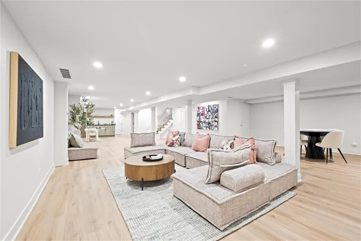 +"PublicRemarks": "FULLY REMODELED! Nothing to do. Welcome to this quintessential Old Leawood sprawling 1.5 story home nestled on a beautiful lot in Leawood Estates. This is truly a special place to call home with a perfect combination of modern luxury and timeless elegance. New concrete work, new sprinkler system, new garage doors, and new sod welcome you. As you enter the new front door, details abound. The expansive and flexible floor plan seamlessly connects the kitchen, dining and living areas. This stunning kitchen is loaded with high end appliances, under mount lighting, quartz, an island, accent lighting and the fridge stays. The home is outfitted with all new windows, doors and a slider. There is even the most beautiful butlers pantry tucked away, but sure to delight. The family room is grounded by shelving and cabinets flanking the shiplap and brick fireplace wall. The large formal living room/dining room is complete with an accent wall. There is a beautiful office on the main level along with the deluxe primary suite retreat. A huge walk in closet, sitting area and beautifully appointed bathroom with a walk in spa-like shower await. Ambient lighting and accent stair carpeting invite you upstairs to two adorable and huge secondary bedrooms and an oversized bathroom that is fun and fresh. The basement is a dream. There is plenty of room to watch TV, play games and entertain with multiple living spaces, storage space and a wet bar! There are two additional bedrooms with new egress windows and big closets, plus a full bathroom to finish off this floor plan. The sprawling backyard is treed, all new grass and a full sprinkler system. Seller is ready for an offer and be in before the holidays!"