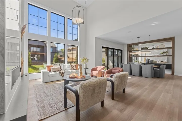 +"PublicRemarks": "This new 1.5 Story Birmingham II plan by SAB HOMES is READY to tour!! \u{A0}This spectacular new MODEL HOME is an impressive mix of modern sophistication loaded with premium new upgrades. This home offers 3 levels of finished space at just over 4600 square feet. As you enter, this plan features a soaring two story ceiling, fantastic new modern lighting, two story great room with floor to ceiling tile fireplace with floating hearth and black linear fireplace. The spacious dining room showcases a sophisticated accent wall with mirrors and floating shelves and a double slider door to access the covered 17' x 10' tiled patio.\u{A0} The butlers pantry has an extra MOEN sink, water bottle filler and glass swing door to Chef's kitchen with premium CAFE appliances and DEKTON waterfall island and backsplash. Explore the main level primary bedroom with tile headboard accent wall with mirrored walnut side trim, spacious bath with freestanding tub and large closet. There are four bedrooms up plus a loft space at the landing ideal for upstairs game room or craft room. There is a space for everyone in this home with three floors and 5 bedrooms. The lower level offers 1339 sf of additional finished space ideal for entertaining or exercising with a whiskey wall bar with mirrored tiles and floating shelves, fitness room with double glass doors and Finnleo Sauna, full bath, and theater room.\u{A0} Don't miss the extra features including a guest bath backlit rock wall, extended 3rd car bump out for extra storage, split 3 car garage, real stone trim, large front porch, tiled front porch and patio TV wall. Come join the fun in Century Farms, a unique one of a kind upscale new home community in Overland Park. Century Farms has a spectacular clubhouse with a fitness center, resort style swimming pool, two pickle-ball courts, kids play area and community garden. It's located near the new Bluhawk shopping center, Heritage Park and the OP Arboretum. BLUE VALLEY SCHOOLS"