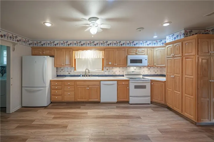 This well-maintained 3-bedroom, 2-bathroom brick ranch offers a brand-new roof, spacious layout, and an attached 2-car garage with built-in storage. The home features both a light-filled living room and a separate den for flexible use. The kitchen provides ample cabinet space, a functional layout, and direct access to the dining area. Outside, the private backyard includes mature shade trees and a patio, offering a comfortable outdoor setting. Located just one block from Sycamore Park and Community Elementary, with convenient access to local amenities, this property is ready for its next owner to make it their own.