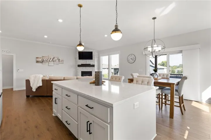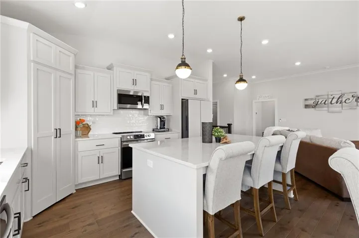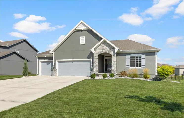 +"PublicRemarks": "Welcome to your dream home in Foxwood Ranch! This like-new ranch/reverse 1.5 story pairs timeless design with modern comfort in a location you’ll love. From the striking stucco-and-stone exterior to the inviting covered front porch, every detail feels intentional. Inside, rich hardwood floors lead through bright, open living spaces. Just off the foyer, a versatile bedroom or office sits beside a beautifully finished full bath. The heart of the home is the open great room with a stone fireplace and a wall of windows overlooking the fenced backyard. The kitchen is a chef’s delight—crisp white cabinets, a large quartz island, stainless appliances, a sleek black sink, and a walk-in pantry that lights up as you open the door. Enjoy casual meals in the breakfast area or step onto the covered deck for your morning coffee. The private owner’s suite is a retreat of its own, featuring a stepped ceiling, plush carpet, and a spa-inspired bath with a rain shower, double quartz vanity, and a spacious walk-in closet with direct access to the laundry room. The expansive unfinished lower level offers endless possibilities—already stubbed for a bath and filled with natural light from daylight and egress windows. Lush landscaping with river rock beds enhances curb appeal, while community amenities include a pool, clubhouse, and playground. All this just minutes from Sycamore Ridge Golf Course, Heritage Park, and Hillsdale Lake—plus it’s in the award-winning Spring Hill School District. >> Pre-Inspected <<"