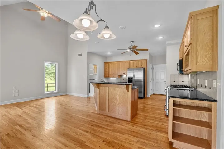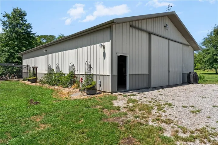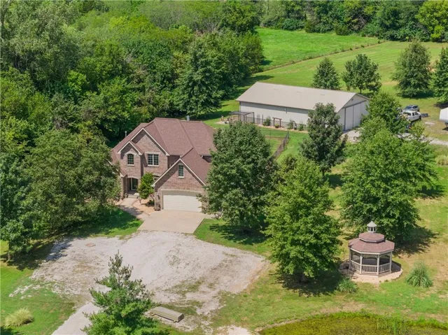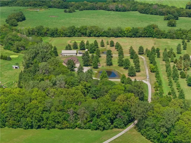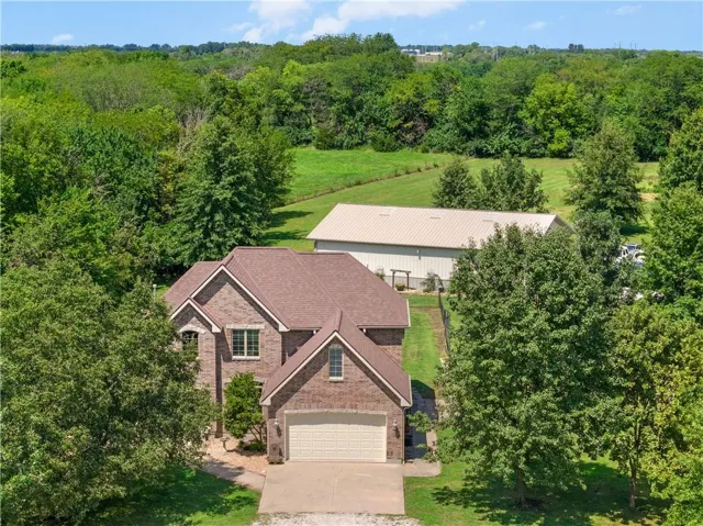 +"PublicRemarks": "Set on 15 beautiful, treed acres in an estate size subdivision with bonus $40,000 built in equity! Recent appraisal available with APPRAISED VALUE @ $890,000! This 1.5 story home offers the space, privacy and amenities you've been looking for. A private gated entrance leads to a serene, tree lined setting with a gazebo, two ponds and a large 60X40 concrete floored Morton outbuilding/shop with its own separate driveway-complete w/ 1 horse stall and room to add more. Inside, enjoy fresh paint, a flexible dining room/home office, great room w/ 2 story vaulted ceilings, fireplace and a spacious eat-in kitchen w/ an island for additional seating or serving. Covered patio off the kitchen. The adjoining hearth room w/ a fireplace is perfect for gathering and holiday entertaining. The main-floor primary suite features a large bath w/ whirlpool tub, separate shower, double vanity and 2 separate walk-in closets. Upstairs, 3 generously sized bedrooms and a small loft area, share a thoughtfully laid out hall bath. The lower level expands your living space with a massive 38X22 family/rec room w/ wet bar, half bath, large storage room and a bonus room that could be a nonconforming 5th bedroom or work-out room. Practical perks include basement entrance from both the main floor and the garage, 2 40-gallon hot water heaters, 2X6 construction, and 9 ft basement ceilings. Horse lovers will appreciate subdivision by-laws that allows up to 5 horses. Peaceful, private and packed with possibilities-this one is a must see. 199th Street is chip and sealed. Incorporated Pleasant Hill."