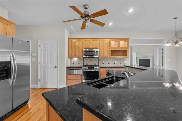 +"PublicRemarks": "Spectacular side-to-side split just minutes from shopping, dining, and convenient highway access! Bright dining area features French doors that open to the patio—perfect for indoor-outdoor living. The primary bedroom offers a private half bath, and all bedrooms feature hardwood floors, ceiling fans, and blinds. Finished lower-level family room with an additional half bath provides extra living space, plus tons of storage and built-ins throughout. Step outside to a huge fenced yard with a covered patio—ideal for entertaining, pets, or play! More info to come!"
