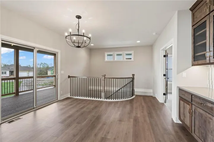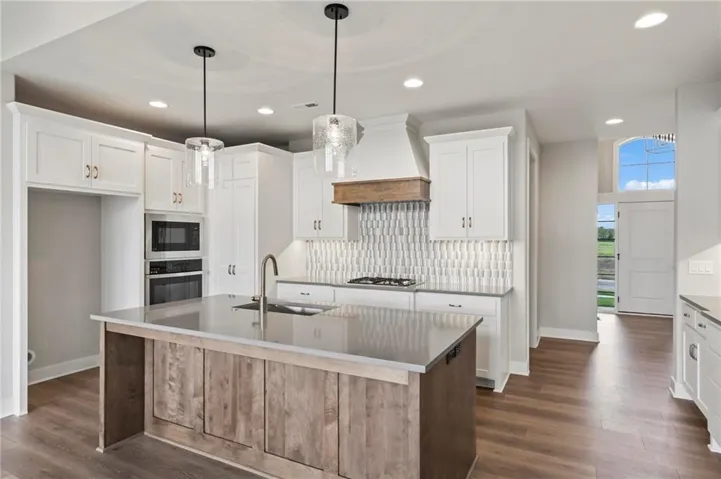 The "Ellenbrook II" Reverse by SAB Homes is here on a walkout lot with a covered deck & covered patio for amazing outdoor entertaining at its finest! As you enter through the grand covered porch into the foyer, you are drawn into the incredible natural light of the Great Room with a fireplace. The covered deck is off of the Great Room by the breakfast area for serene nights with your favorite beverage. The dining room is a splendid dining space just in from the front entry. The Kitchen has an island for your entertaining, ample counter space, S/S Appliances and walk-in pantry. The Primary En-Suite bedroom is tucked behind the Great Room. The primary bathroom has a soaker tub, double vanities and tile shower, leading into the walk-in primary closet. The main level laundry room next to the Primary hallway. Bedroom #2 has a walk-in closet and is on the opposite side of main level connected to a full bathroom with a shower over tub, that also connects to the mud room hall next to the entry from the garage. The lower level has 2 bedrooms, both with walk-in closets, full bathroom with shower over tub, Recreation Room, wet bar, half bath, ample storage and walkout to the covered porch to the beautiful back yard. \r\n