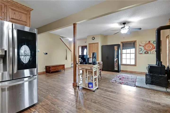 +"PublicRemarks": "Are you looking for the perfect 10 acres? This one might be THE ONE! This 3 bedroom, 2.5 bath, 2-story, with basement, offers a 30x20 outbuilding/garage, chicken coop, loafing shed ,fence and cross fenced with some fruit trees! Oversized familyroom for those fun game nights, or quiet evenings at home. Open concept hearthroom next to kitchen with wood burning stove, allows gathering for the whole family. Upstairs primary bedroom provides double vanity, with heated tile flooring next to shower, and large closet. There are also pocket doors opening to 3rd bedroom which make the perfect nursery or sitting room expansion, if desired. Spacious 2nd bedroom with built-ins and dormer windows add country flair. Hunting and fishing enthusiaist will be delighted with the adjacent walk-on ground available to bag that big buck or enjoy the "catch of the day!" Drive just a few minutes into town for historic 38 block downtown nostalgia with boutiques, farmers market, riverwalk park, museums, and fabulous local dining! Leavenworth is noted as the "First City of Kansas" and the "Gateway to the West!" If you are wanting a little slice of heaven outside the "rat race" of the city, come explore this lovely Country Charmer! It's perfect for those hobby farmers or anyone needing a peaceful setting to call their own!"