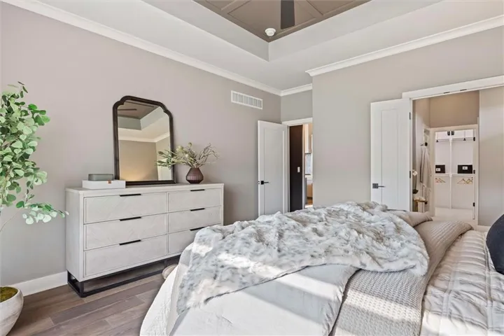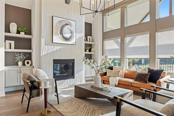 +"PublicRemarks": "Introducing the brand new Augusta V by Bickimer Homes with upgraded spaces and slight tweaks to this favorite 1.5 Story plan. Impressive new modern mountain\u{A0}exterior with high peaks, smooth limestone trim, black window frames and soft misty green gray color combination. Inside features an ideal\u{A0}1.5 Story\u{A0}plan with a main floor primary suite with lux style bath, 2nd bedroom/ office/piano room, great room with wood accent beams and cast concrete fireplace, impressive kitchen with Thermadore range and smoky beige quartzite kitchen Island, butler's pantry drink station, and a BRAND NEW mud hall drop zone leading to walk in pantry. A stunning combination\u{A0}of decor with soft white, creamy beige, warm wood flooring with soft green painted cabinet mixed with white and gold trim lighting. WOW! The lower\u{A0}level is finished with a large TV room, amazing L shaped\u{A0}stone trimmed wall bar, built in pub style booth, gym, sauna room with cold plunge tub and plenty of storage\u{A0}space. The upstairs has just as much to offer with an innovative set of bunk beds in the loft space in addition to 3 bedrooms. Perfect for family fun or guests to bunk all in one room together.\u{A0} Century Farms has a spectacular club house with a farmhouse twist ideal\u{A0}for neighborhood gatherings or private parties.\u{A0} It features\u{A0}a small prep area, fireplace, pub tables, reading loft and a fitness center. The large swimming pool includes a slide and is long enough for three competitive swim lanes. There are plenty\u{A0}of neighborhood activities\u{A0}with a fire-pit, two pickle-ball courts and a basketball\u{A0}hoop, farm themed animal kids play area, wildflower walkways and a community garden. Century Farms is conveniently located near the brand\u{A0}new Bluhawk shopping\u{A0}center, Heritage Park, the Johnson County Trail system and the Overland Park Arboretum.\u{A0}Come join the fun in Century Farms, a unique one of a kind upscale new home community in Overland Park. BLUE VALLEY SCHOOLS"