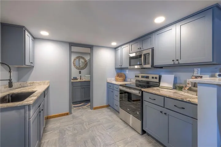 "LongDescription" => "Kitchen with decorative backsplash, a textured ceiling, stainless steel appliances, and sink"