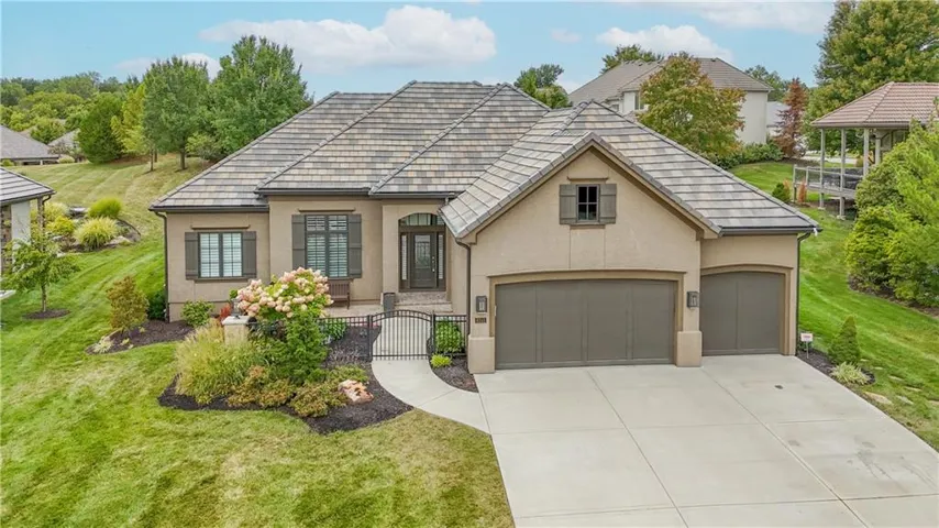 The finished lower level includes a large rec room with wet bar, two additional bedrooms, an exercise/flex room, and ample storage space. A tile roof adds lasting value and curb appeal. Enjoy all of the Riss Lakes Amenities, 3 swimming pools, Trails, Recreational Lake, Tennis Courts and Playground. Conveniently located just 15 minutes from the airport and close to shopping, dining, and major highways, this home combines style, comfort, and convenience in one perfect package