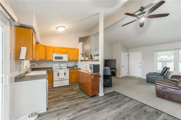 The main living room feels open and inviting with tall vaulted ceilings — perfect for hosting. The kitchen and dining area feature a walk-in pantry, giving you all the storage space you need. Just a few steps up, you’ll find 3 bedrooms and a full bathroom with beautiful hardwood floors (and more hardwoods hidden beneath the living room carpet and stairs).\r\n