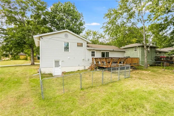 From the sliding doors off the kitchen, you'll enjoy a sizable deck. There is a fenced in area but you also have a larger yard to enjoy as well. \r\n
