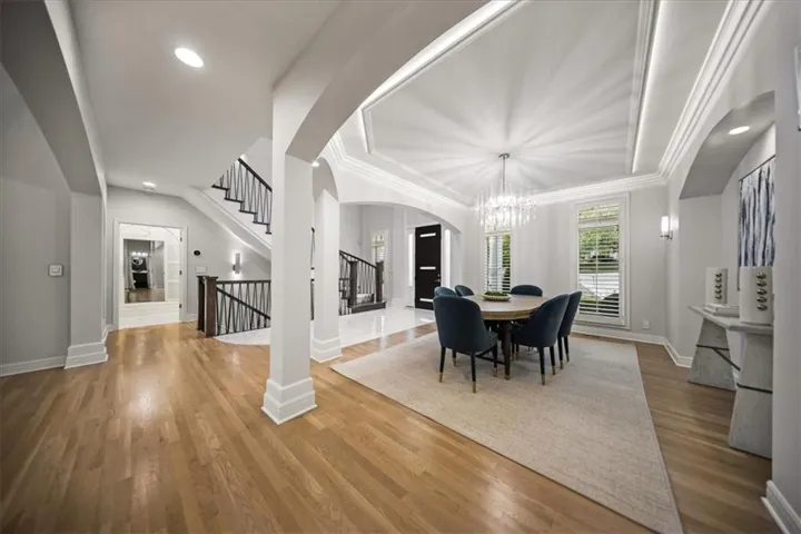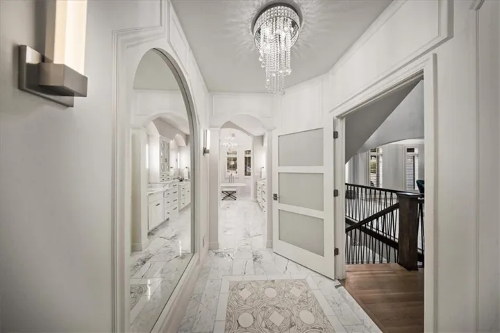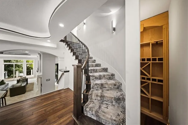 The rare two-tiered lower level boasts soaring ceilings, a home office, expansive recreational space, a climate-controlled room prepped for a 10-person hot tub, and a secret door leading to a hidden storage room—perfect for seasonal decor or valuables. A $40,000 indoor playroom and thoughtfully designed laundry room on main level with built-in pet crates add functionality for the modern lifestyle. No detail has been overlooked—from Hunter Douglas window treatments, rich hardwood floors, custom curved staircase, new carpeting, Legrand smart outlets, whole-home audio, state-of-the-art electronics, water softener, and a premium RO water system. \r\n