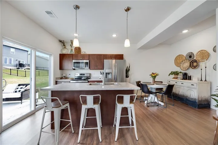 +"PublicRemarks": "Better than new, turn key opportunity! This stunning two-story home offers 3 bedrooms, 2.5 baths and a 2 car garage. The open-concept kitchen features a spacious island, quartz countertops, stylish tile backsplash, and flows seamlessly into the dining and living areas with beautiful LVP flooring throughout. The expansive primary suite boasts a luxurious en-suite bath with a double vanity, shower, and walk-in closet. Convenient bedroom-level laundry adds ease to your daily routine. Located in a vibrant amenity-rich community, residents enjoy access to a pool, playground, firepit, and upcoming pickleball & basketball courts plus frisbee golf!"