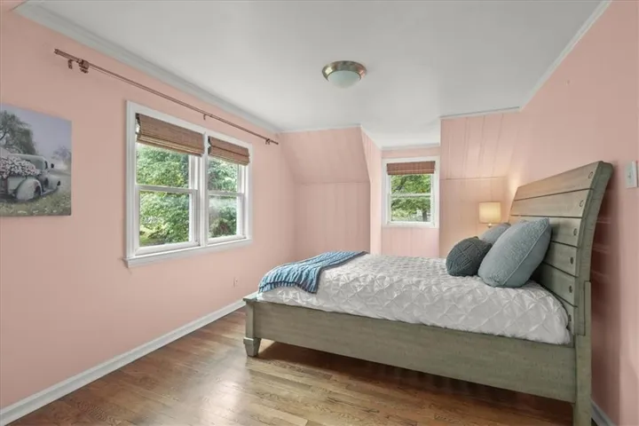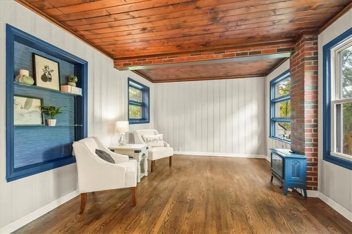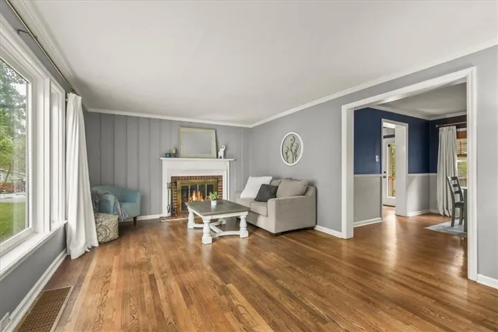 +"PublicRemarks": "Nestled in Golden Acres, this inviting 2-story home exudes character on its spacious corner lot, surrounded by mature trees and a private, fenced backyard. The main living room welcomes you with abundant natural light from its large picture window, while rich hardwood floors and a warm fireplace make it a perfect spot to unwind. The kitchen flows into the separate dining area on one side and a second family room on the other, where tongue-and-groove ceilings, custom built-ins, and an exposed brick accent wall bring texture and charm to the space. Upstairs, the primary suite offers a tranquil retreat, ideal for unwinding after a long day. Step outside to enjoy two decks—each ready for outdoor lounging or entertaining—and the convenience of a side garage. This beautiful home combines thoughtful details with a layout designed for both comfort and style. Don’t miss your chance to make this gem your own!"
