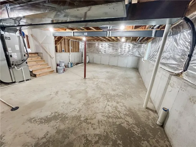 "LongDescription" => "Unfinished basement featuring heating unit"