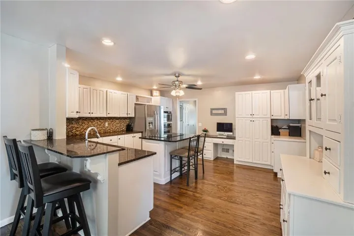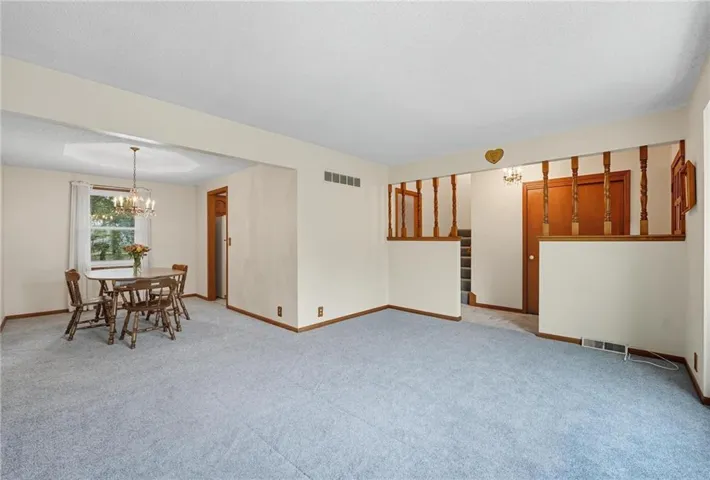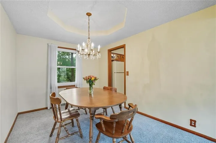 +"PublicRemarks": "Fantastic location in the heart of Olathe! Spacious primary bedroom has a walk-in closet, second closet and primary en suite. Two more bedrooms and a full bath on that level; 4th bedroom upstairs is extra large! Kitchen has lovely new floors, new paint and includes all appliances, even the refrigerator. Family room and dining room both have new carpet! Head downstairs for a 2nd family room and a half bath. Basement space has a hobby room and plenty of storage! Newer HVAC keeps your home comfortable! Relax on your covered deck and enjoy a generous sized fenced yard. The exterior has maintenance-free vinyl siding. Washer and dryer stay too! Such an adorable home!"