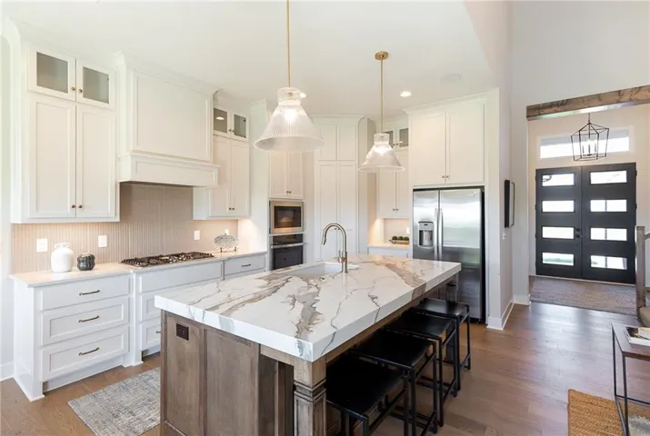+"PublicRemarks": "Wheeler Homes proudly presents their award-winning Newport Story 1/2 model, showcased on Lot 1 in Southern Meadows. Please note: this is a model home and not currently for sale. This stunning 1.5-story floor plan features a dramatic two-story great room filled with natural light, seamlessly opening to the chef’s kitchen. Designed for entertaining, the kitchen boasts an oversized island, custom cabinetry, and high-end finishes throughout. The main-level primary suite offers a private retreat with a spa-inspired bath, including a spacious walk-in shower, free-standing tub, and convenient laundry access directly from the primary closet. Upstairs, you’ll find flexible living spaces with a loft, study area, and two oversized bedrooms connected by a Jack & Jill bath. Additional highlights include a rare four-car garage with room for large vehicles and an unfinished basement ready for your personal design."