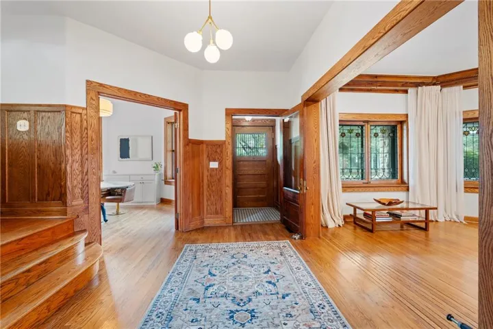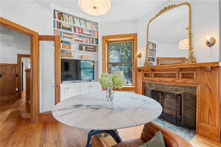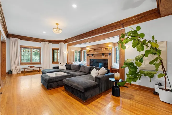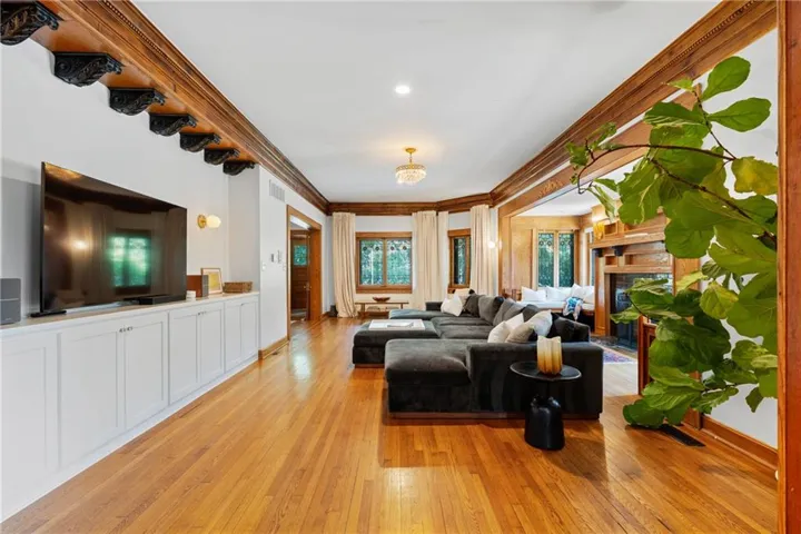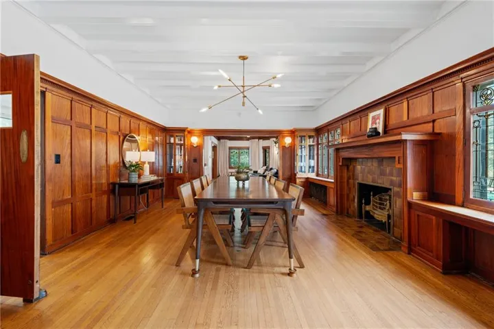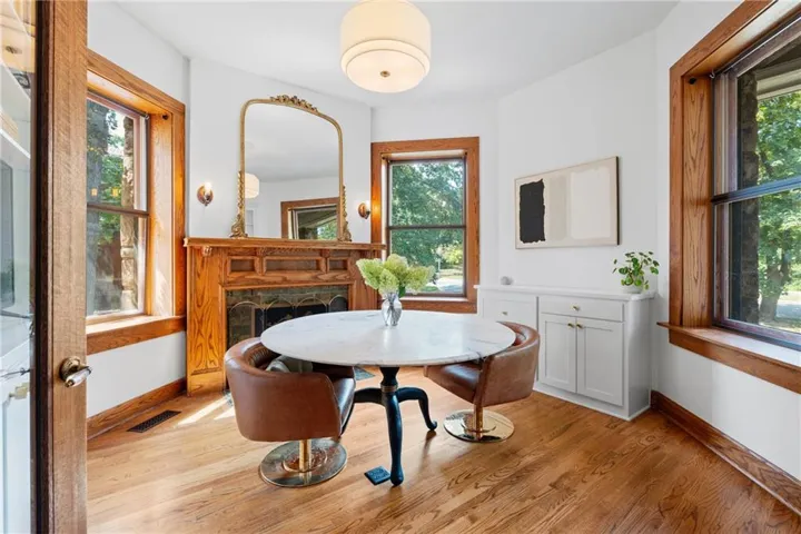 +"PublicRemarks": "The Rollins M. Hockaday house,has many unique features! The exterior is anchored by a storybook turret and a wraparound covered front porch providing year round protection and a cooling breeze on those hot days. As soon as you step inside through the vestibule, you will instantly feel the warmth of the oak paneling throughout, giving both a masculine and grounding feel. The first floor of the turret has so much natural light along with library built ins and a fireplace. The Westside of the house has 15 original stained glass windows, a massive central fireplace with built-in bench seating to cuddle up in for a good book. The dining room also has a central fireplace, coffered ceilings, oak paneling and a bay bump out. The full renovated kitchen is a perfect blend of historic and modern with a 13' concrete island and built in seating. Don't miss the moody powder room either. Two ways to get upstairs - either the main grand staircase or the servants stairs quarters off of the kitchen. The second floors main feature is the expansive primary suit. This suite has a full sitting room, 2 fireplaces, buil-in bookcases with leaded glass, an en suite 4 piece bathroom and a sleeping porch off of the rear which is being used as a walk-in closet and workout roof outfitted with a infrared sauna. Laundry is also on this floor as well as 2 more bedrooms with fully renovated bathroom blending the original tub and stained glass windows. The third floor has two more bedrooms (one with an private powder room) and a family room in the top of the turret. The main house also has a speakeasy/billiards room in the basement with more original stained glass windows, fireplace and a stage. So much storage space in the basement as well as a full bathroom with clawfoot tub and a workshop with a walkout.Also a saltwater pool and a studio apartment above the detatched garage. This massive lot is fully fenced with an automatic driveway gate and plenty of additional room for recreation."