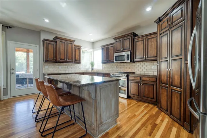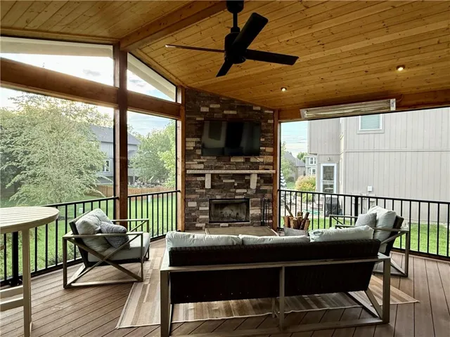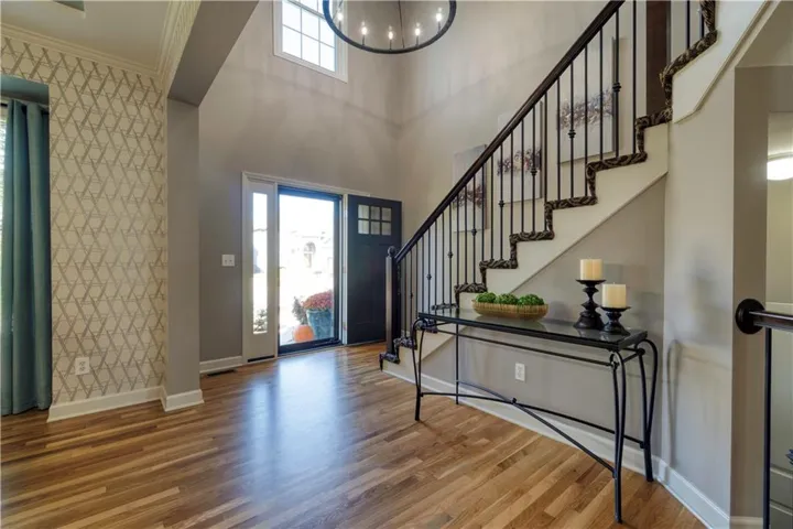 Come Home to this beautiful custom 4 bedroom with another non-conforming bedroom/bonus room in basement with adjoining full bath), 4 1/2 bath Hampton II by Concord Homes, meticulously cared for since being built 19 years ago. Open kitchen with island lets the most popular room in the house be filled with friends and family. Wonderful Floor plan perfect for a busy family, plenty of good sized bedrooms for the whole family. All new roof, gutters, garage doors, and water heater!! HVAC 5 years old. You'll need to do nothing to this beauty, but move right in and start loving your new life! Incredible schools and restaurants and shops nearby. Luxurious screened in porch added 4 years ago with attractive stone fireplace, lovely to enjoy the Chiefs game out there on these beautiful fall evenings! Attractive landscaping spans the perimeter. Plenty of living space, every room well appointed. Finished basement a great hang out with full bar for entertaining. Come fall in love with this wonderful home in a beautiful neighborhood!