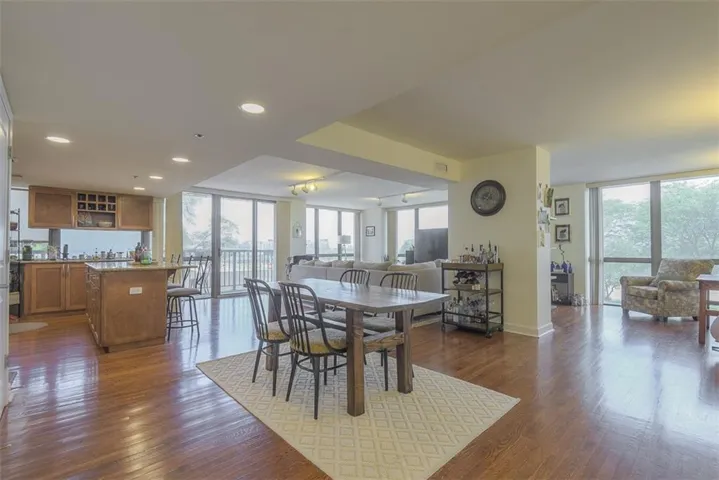 Inside, you’ll find 1,625 sq. ft. of open, airy living. Floor-to-ceiling windows fill the space with natural light, while hardwood floors and quality finishes add a refined touch. The kitchen is equipped with stainless steel appliances, granite counters, custom cabinetry, and a large island that connects to the dining area, accommodating hosting when the occasion calls.\r\n
