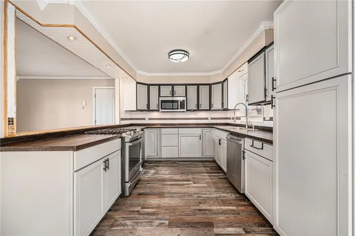 Attractive and smart butcher block countertops flank the GAS oven/range and all the appliances are just TWO years young! (Matching refrigerator is scheduled for install prior to closing) There's tons of storage in the kitchen and don't miss the barista station just inside the deck door, perfect for prepping that sunrise cuppa! \r\n